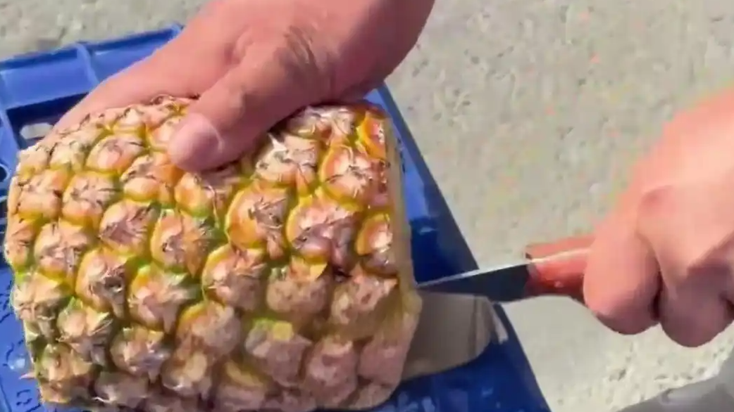 天津一摊主削凤梨火了